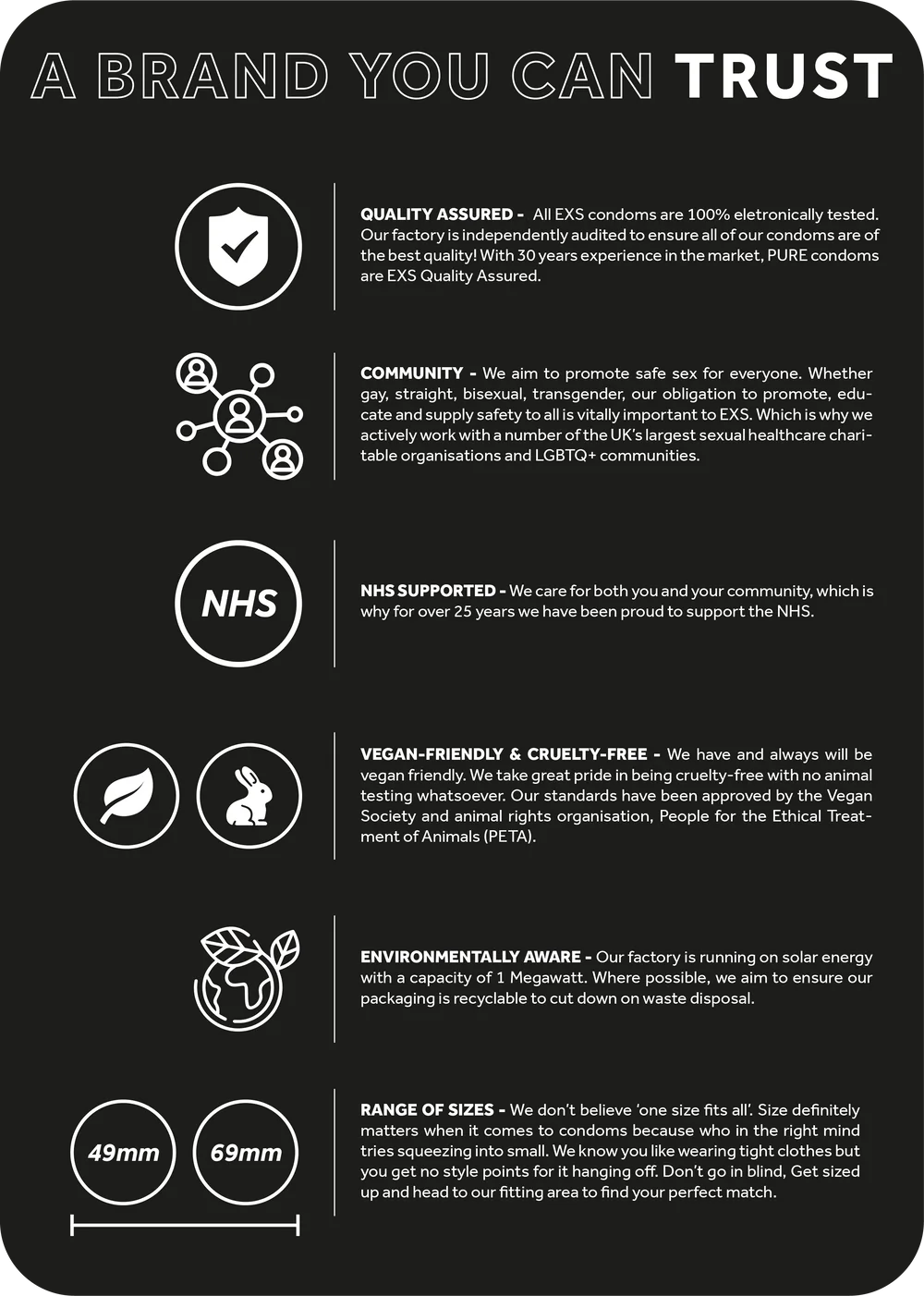 Our wide range of vegan and cruelty-free condoms have been tried and tested (a lot of hours) to give you the best possible experience in the bedroom, the kitchen, the living room, out…you get the point.